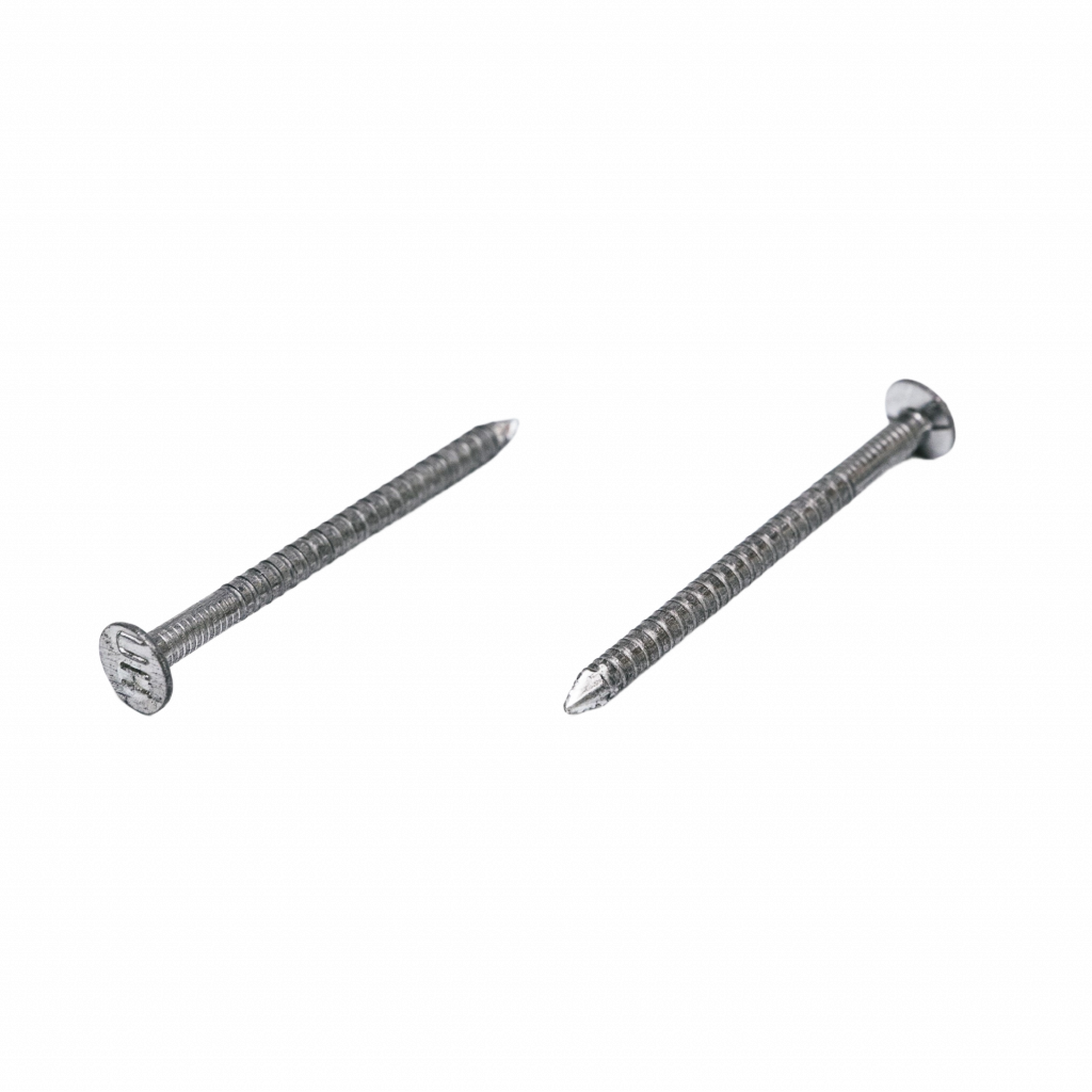 Nail screwed — from spiral-shaped sliced along rod, which provides elevated fixation in wood. Its use in pallet production, construction and woodworking for connection elements, which are exposed load. Thanks to screw form nail better holds in material and not pulls out at vibrations or movements.